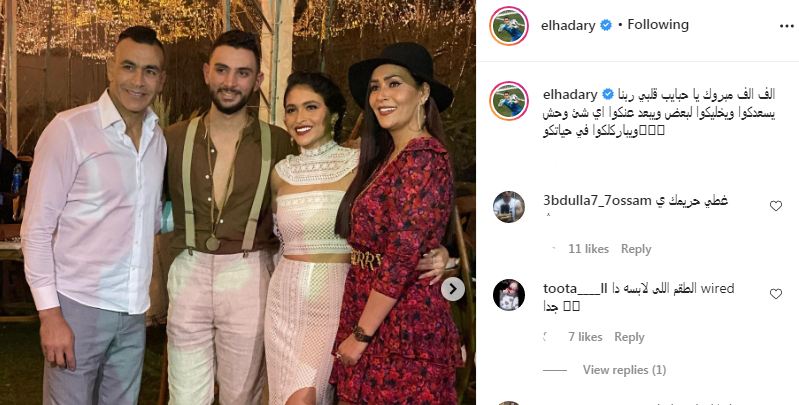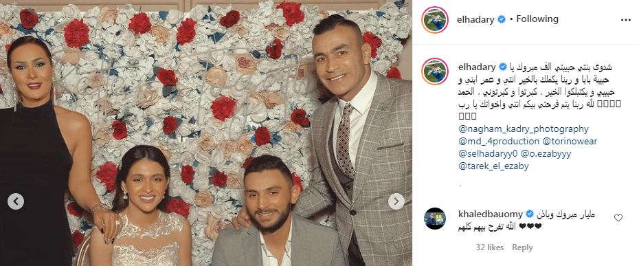 الحضرى يهنئ ابنته شدوى بعد خطبتها: ”كبرتوا وكبرتونى ربنا يتم فرحتى بيكم”
