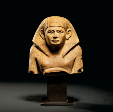1- تمثال نصفى من الحجر الجيرى الأصفر المصرى يرجع إلى عصر الدولة الوسطى ويعود تاريخه فى الفترة ما بين 2046 - 1794 قبل الميلاد، ويقدر ثمن التمثال ما بين 25 إلى 35 ألف جنيه إسترلينى.