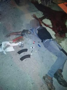 كما تم العثور بحوزتهم على (أحزمة ناسفة - أسلحة آلية - قنابل يدوية)، ويتم مطاردة العناصر الإرهابية.