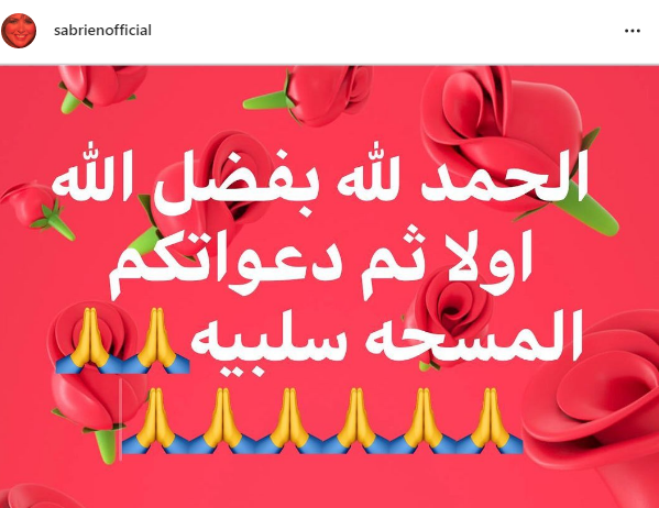 صابرين تعلن شفاءها من فيروس كورونا: بفضل الله ثم دعواتكم المسحة سلبية