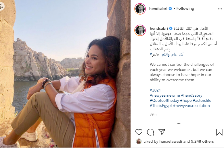وجهت الفنانة هند صبرى رسالة تهنئة لمتابعيها، بمناسبة انتهاء عام 2020، حيث طالبت الجميع بضرورة التحلى بالأمل أثناء استقبال العام الجديد 2021، وعلقت من خلال حسابها على إنستجرام، "الأمل هى تلك النافذة الصغيرة، التى مهما صغر حجمها، إلا أنها تفتح آفاقاً واسعة فى الحياة، الأمل اختيار، أٔتمنى لكم جميعا عاما يبدأ بالأمل و التفاؤل رغم الصّعاب، كل سنة وانتوا بخير".