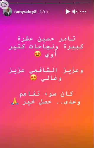 رامى صبرى يعلن انتهاء أزمته مع عزيز الشافعى وتامر حسين: ”سوء تفاهم وعدى”