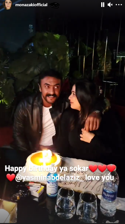 شاركت النجمة مني زكي جمهورها ومتابعيها بلقطات من حفل عيد ميلاد صديقتها النجمة ياسمين عبد العزيز مع زوجها الفنان أحمد العوضي، عبر خاصية ستوري بحسابها بموقع "انستجرام"، وظهرا خلالها أمام تورتة عيد ميلادها في حفل صغير، وعلقت عليه قائلة :"كل سنة وأنتي طيبة يا سكر.. بحبك"، حيث أحتفلت ياسمين عبد العزيز بعيد ميلادها الـ41 أمس، وهي من مواليد يوم 16 يناير عام 1980.