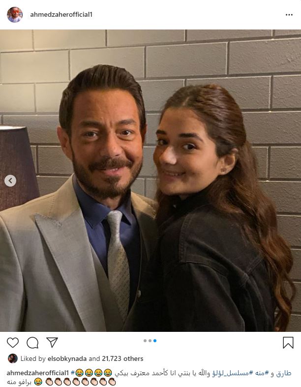 وقال الفنان أحمد زاهر عبر حسابه الشخصي على إنستجرام: "طارق ومنه.. مسلسل لؤلؤ والله يا بنتي أنا كأحمد معترف بيكي برافو منه".