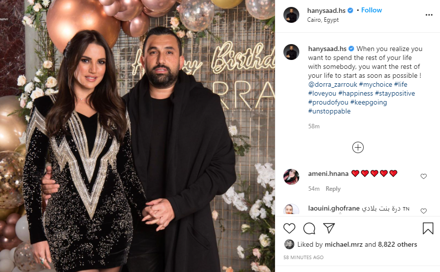 ونشر سعد، عبر حسابه على انستجرام، صورة جمعته بزوجته درة، اتبعها قائلا: "عندما تدرك أنك تريد أن تقضى بقية حياتك مع شخص ما، فأنت تريد أن تبدأ بقية حياتك فى أسرع وقت ممكن".