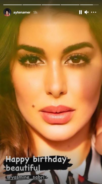 هنأت الفنانة آيتن عامر، الفنانة ياسمين صبرى بمناسبة عيد ميلادها، حيث نشرت صورة لياسمين عبر خاصية ستورى على حسابها على إنستجرام، وكتبت عليها قائلة: "كل سنة وأنتى طيبة يا جميلة".