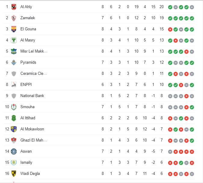ترتيب الدوري المصري بعد انتهاء مباراة الأهلي والمقاولون العرب