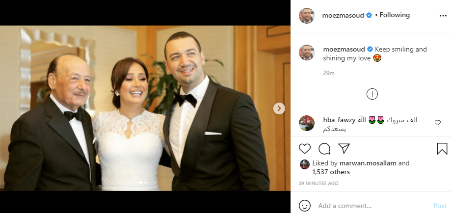 في أول تعليق له عقب عقد قرانه على الفنانة حلا شيحة، شارك الداعية الإسلامي معز مسعود عبر حسابه بموقع انستجرام من عقد القران، وكتب قائلاً: "استمرى في الابتسام والتألق حبيبتى"، كما صورة أخرى مع الفنانة حلا شيحة عقب عقد القران، وعلق على صورة أخرى بالآية القرآنية: {وَالَّذِينَ يَقُولُونَ رَبَّنَا هَبْ لَنَا مِنْ أَزْوَاجِنَا وَذُرِّيَّاتِنَا قُرَّةَ أَعْيُنٍ وَاجْعَلْنَا لِلْمُتَّقِينَ إِمَامًا}.