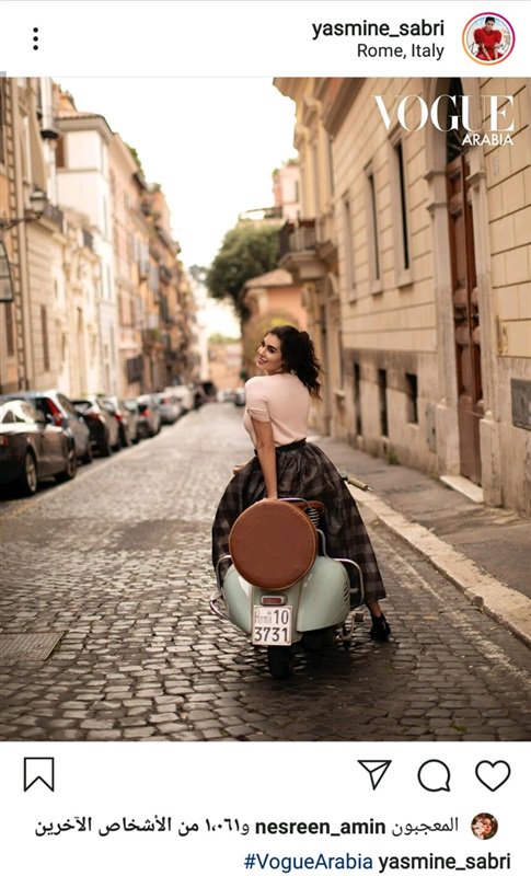 ظهرت ياسمين في الصور وهي على متن دراجة نارية في شوارع روما الايطالية ولاقت الصورة اعجاب متابعيها.