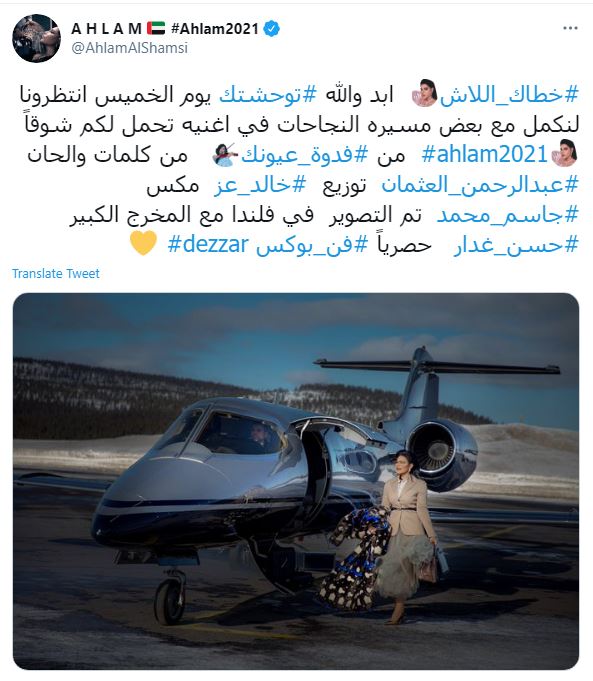 وقالت الفنانة الإماراتية أحلام عبر حسابها الشخصي على تويتر: "خطاك اللاش أبد والله توحشتك، يوم الخميس، انتظرونا لنكمل مع بعض مسيرة النجاحات في أغنيه تحمل لكم شوقًا من فدوة عيونك".