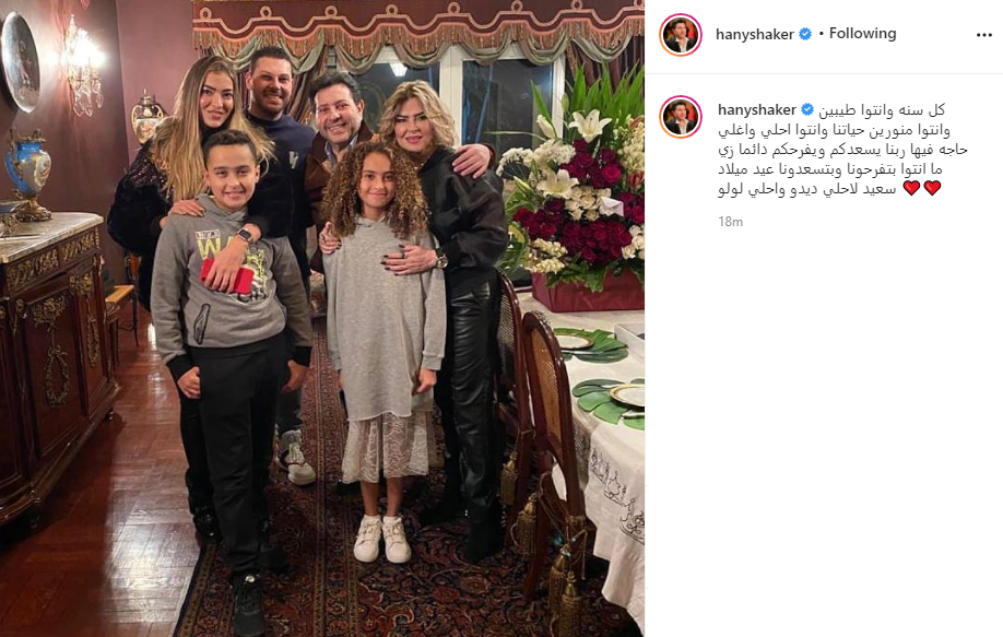 ونشر أمير الغناء العربى، صورة مع أسرته وأحفاده، عبر حسابه على انستجرام، صحبها بالتعليق: "كل سنة وانتوا طيبين وانتوا منورين حياتنا وانتوا أحلى وأغلى حاجة فيها، ربنا يسعدكم ويفرحكم دائما زى ما انتوا بتفرحونا وبتسعدونا، عيد ميلاد سعيد لأحلى ديدو وأحلى لولو".
