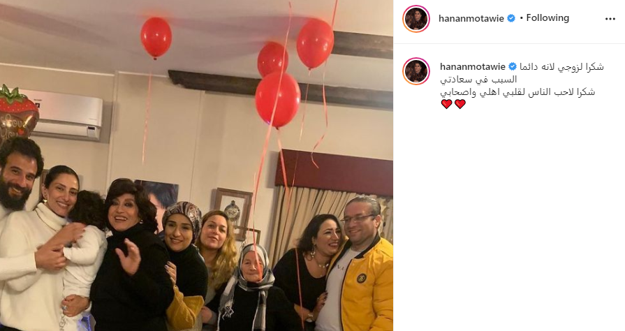 ونشرت حنان، صورا من الاحتفال بعيد ميلادها، عبر حسابها على انستجرام، صحبتها بتعليق: "شكرا لزوجى لأنه دائما السبب فى سعادتى.. شكرا لأحب الناس لقلبى أهلى وأصحابى".