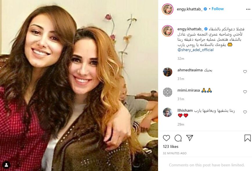 وطلبت الفنانة إنجي خطاب، من متابعيها الدعاء لشيرى عادل، عبر حسابها على إنستجرام، وكتبت قائلة: "فضلًا دعواتكم بالشفاء لأختي وصاحبة عمري، النجمة شيري عادل بالشفاء، هتعمل عملية جراحية دقيقة، ربنا يقومك بالسلامة، يا روحي يارب".