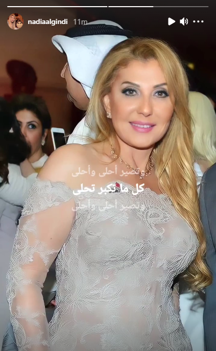 تغزلت النجمة الكبيرة نادية الجندى، فى نفسها لتؤكد مقولة "العمر مجرد رقم"، حيث نشرت عبر ستورى حسابها على انستجرام، صورة لها مصحوبة بأغنية القيصر العراقى كاظم الظاهر "كل ما تكبر تحلى.. وتصير أحلى وأحلى"، دون أن تعلق عليها بأى شيء.