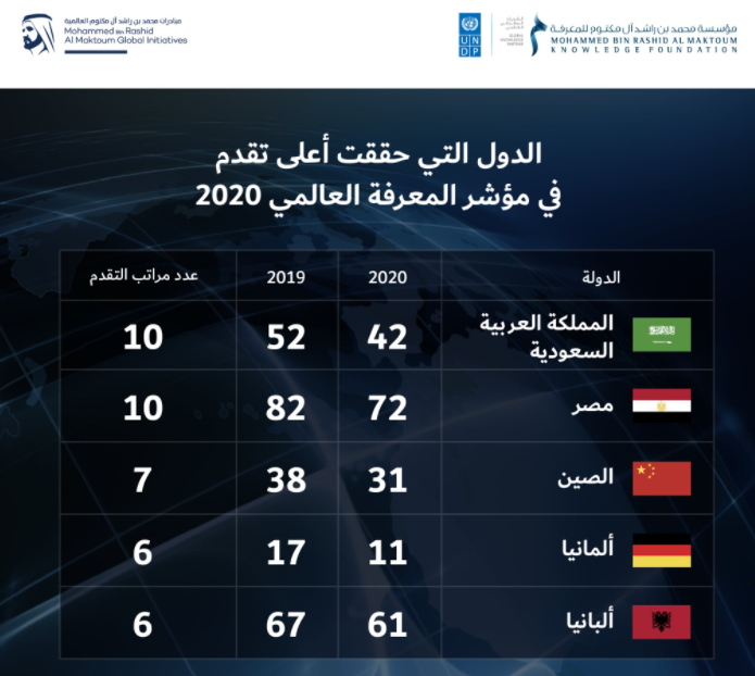 أصدرت مؤسسة محمد بن راشد آل مكتوم للمعرفة، بيانا اليوم السبت، يوضح أكثر الدول التي حقَّقت تقدماً في مؤشر المعرفة العالمي لعام 2020.