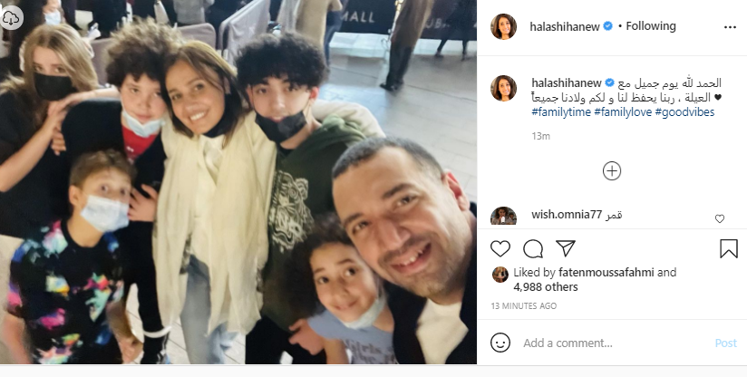كشفت الفنانة حلا شيحة عن أول ظهور لها بصحبة زوجها الداعية معز مسعود، في صورة نشرتها عبر حسابها على موقع إنستجرام، حيث ظهر الثنائى معًا خلال الصورة التي حملت شعار family time، بصحبة أبنائها، وكتبت حلا شيحة في تعليقها على الصورة: "الحمد لله يوم جميل مع العيلة، ربنا يحفظ لنا ولكم ولادنا جميعاً".