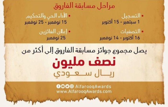 أو متابعة حساب المسابقة على تويتر alfarooqawards.