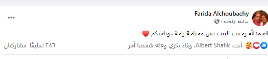 فريدة الشوباشى تعلن شفاءها من فيروس كورونا: ”الحمد لله رجعت البيت”