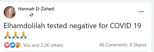 أعلنت الفنانة هنا الزاهد، تعافيها من فيروس كورونا المستجدة، مؤكده سلبية مسحتها الأخيرة بعد أسبوعين تقريبا من إصابتها بالفيروس وخضوعها للعزل المنزلي، ونشرت هنا الزاهد تدوينه عبر حسابها الشخصى على "فيس بوك"، وكتبت: "الحمد لله تحليل فيروس كورونا سلبي".