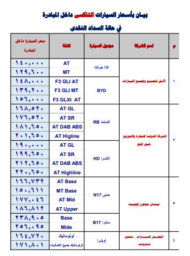 وجاءت أسعار التاكسي في مبادرة إحلال السيارات كالأتي: