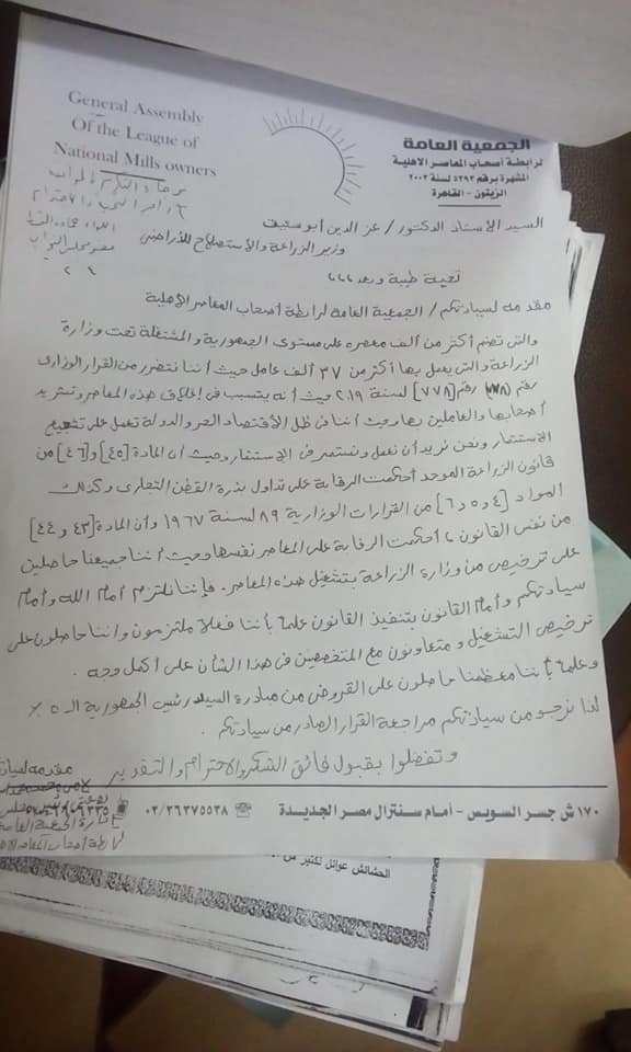 قال الحاج حسين عبدالرحمن ابوصدام نقيب الفلاحين ان قرار وزير الزراعة رقم 778 لسنة 2019 يحتاج للمراجعه لانه يهدد باغلاق المعاصر الاهليه لافتا أصحاب المعاصر الاهليه تقدموا بشكاوي للنقابه لتضررهم من عواقب هذا القرار الذي يهدد عدد كبير من أصحاب المعاصر الأهلية والتي تضم أكثر من ألف معصره على مستوى الجمهوريه ويعمل بها أكثر من 37 الف عامل مشيرا الي
