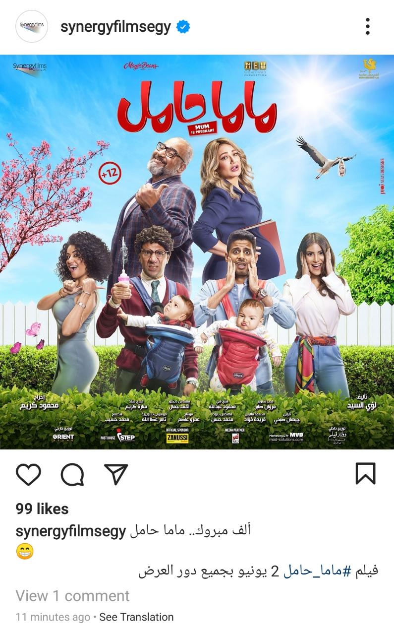 كشفت شركة سينرجي فيلمز ونيو سينشري وأفلام مصر العالمية عن موعد عرض فيلم "ماما حامل" للنجمة ليلى علوى فى دور عرض السينمات، حيث من المقرر طرحه 2 من شهر يونيو المقبل.