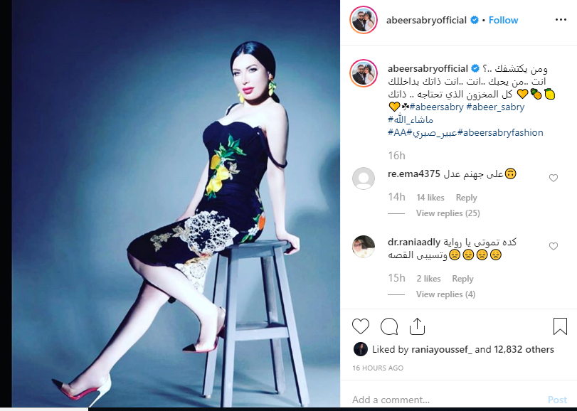 وكتبت عبير في تعليق على الصورة: "ومن يكتشفك؟ أنت.. من يحبك.. أنت.. أنت ذاتك.. بداخلك كل المخزون الذي تحتاجه.. ذاتك"