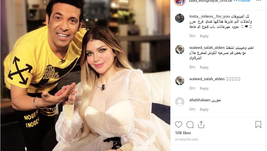 نشر الفنان سعد الصغير عبر حسابه الرسمى على إنستجرام صورة جديده له برفقة الاعلامية ياسمين الخطيب و ظهر فى الصورة و هو ممسك بيديها.