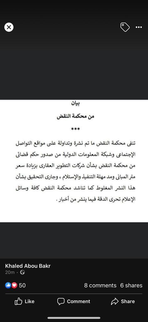 «النقض» تنفي صدور حكم حول التطوير العقاري وزيادة أسعار المباني