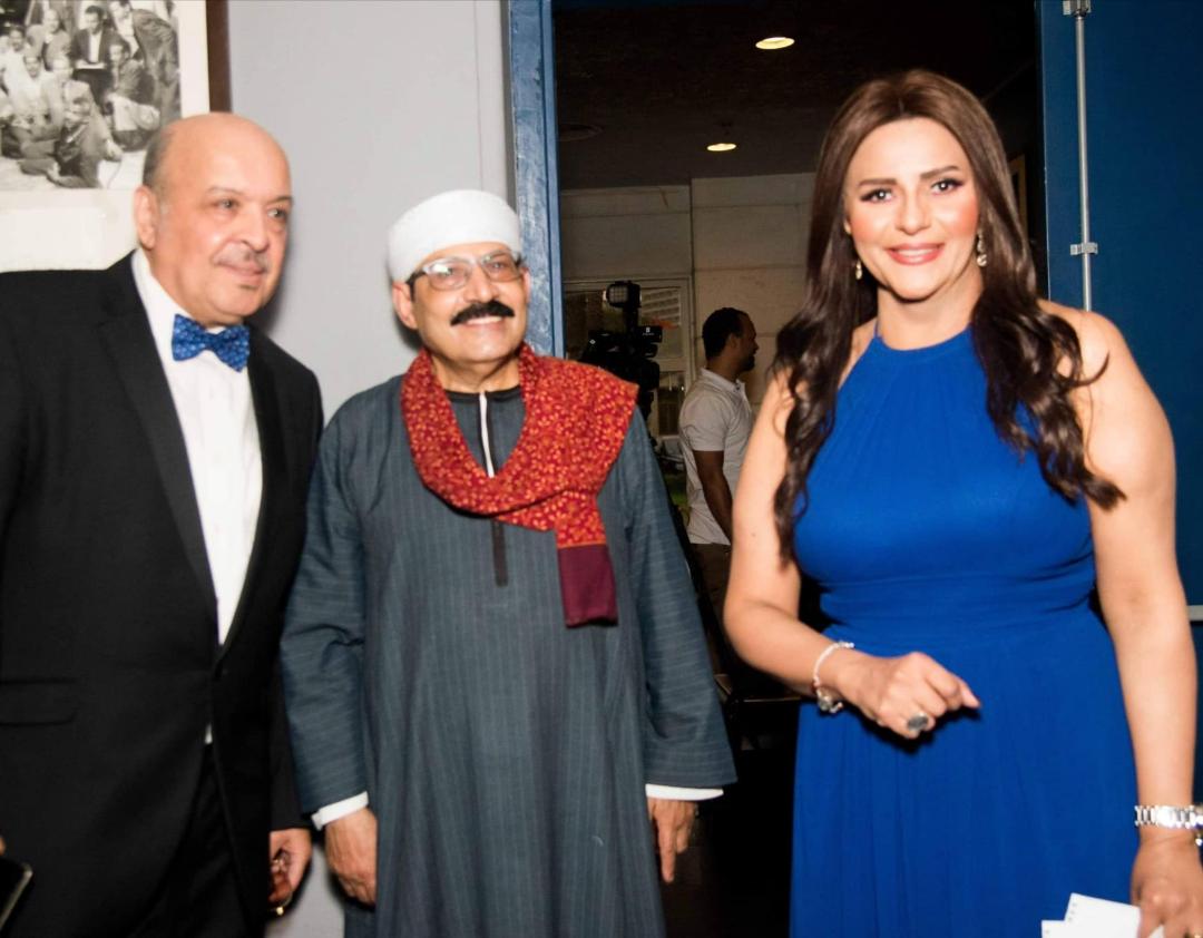 المنشد عبدالرحمن بلاله يتوسط هبه فهمى وعادل العبساوى