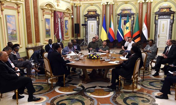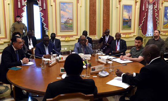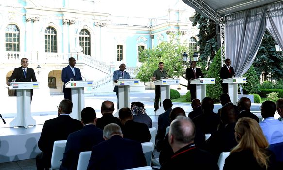 وعقد الوفد الأفريقى جلسة مباحثات اليوم مع الرئيس الأوكرانى فوليديمير زيلينيسكى، لعرض عناصر المبادرة الأفريقية المشتركة لتسوية الأزمة الروسية الأوكرانية، ثم أعقب ذلك مؤتمر صحفى مشترك.