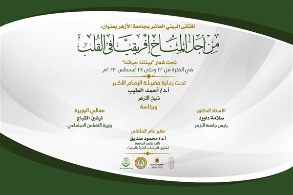 اناب الدكتور الطيب فضيلة وكيل الأزهر في افتتاح الملتفي الذي حضره اللواء الطيار منتصر مناع نائب وزير الطيران ةالدكتور علي أبو سنة رئيس جهاز شئون البيئة، وعدد من ممثلي وزارات ومؤسسات الدولة المختلفة وأمين عام مجمع البحوث الإسلامية ونواب رئيس الجامعة ورئيس قطاع المعاهد الأزهرية.