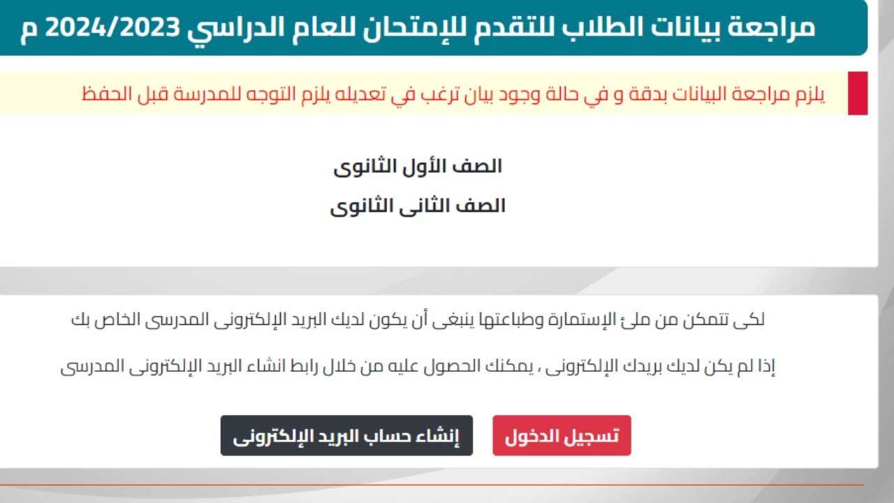 استمارة التقدم لامتحانات الثانوية العامة 2024