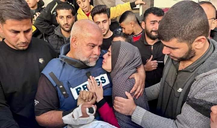 ونشرت قناة الجزيرة مقاطع فيديو لمراسلها في غزة وائل الدحدوح، الأحد، وهو "يلقي نظرة الوداع الأخيرة عل نجله حمزة"، الذي قتل بحسب القناة في "قصف إسرائيلي، استهدف صحفيين في غرب خان يونس جنوب قطاع غزة".