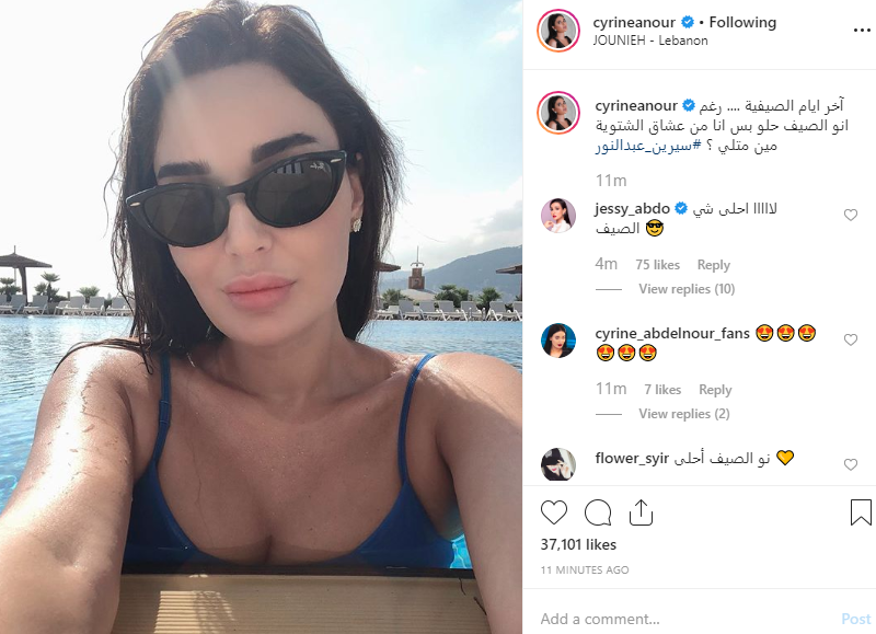 نشرت النجمة اللبنانية سيرين عبد النور صورة جديدة لها عبر حسابها الخاص على موقع التواصل الاجتماعي للصور والفيديوهات إنستجرام.
