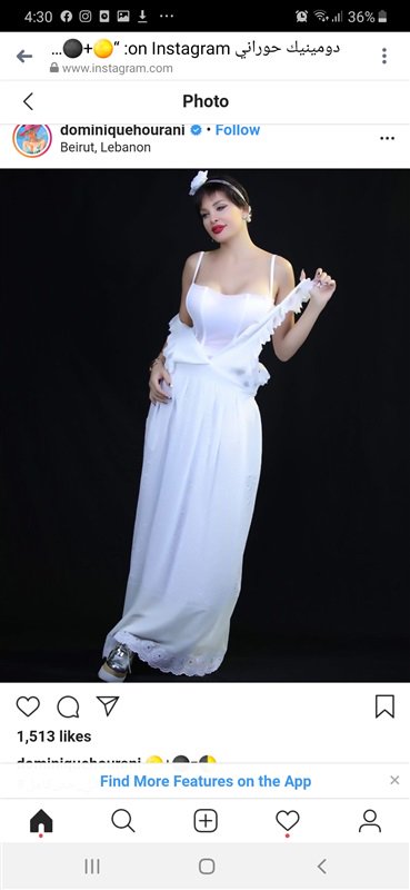 وظهرت دومينيك حوراني بـ جمبسوت باللون الابيض مثير مكشوف ، وانتعلت حذاء ذات الكعب العالي باللون الفضي، وعلق أحد المتابعين قائلًا " كل مرة تصدمينا".