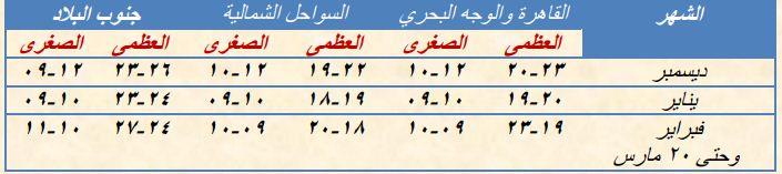 متوسط درجات الحرارة خلال شهور فصل الشتاء :