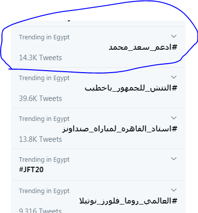 تصدر هاشتاج "ادعم سعد محمد"، موقع التواصل الاجتماعي "تويتر"، لدعم لاعب نادي الزمالك سعد محمد الذي أعلن إصابته بمرض سرطان الدم.