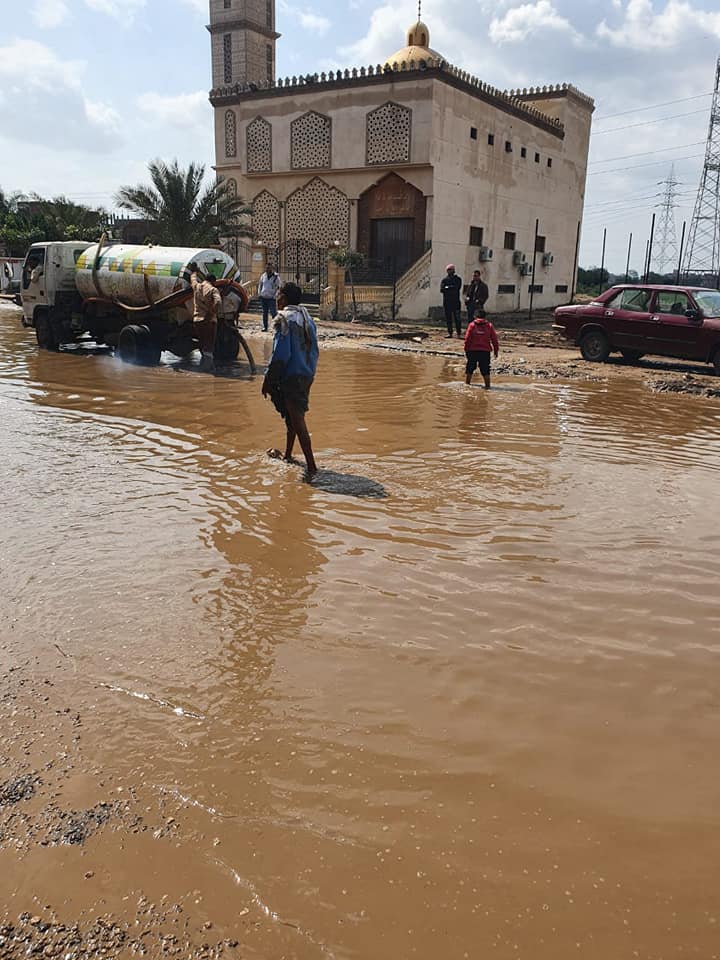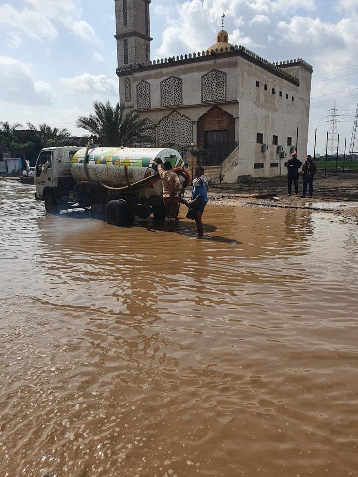 رئيس الوحدة المحلية ببلقس تتابع عمليات شفط المياه من الشوارع