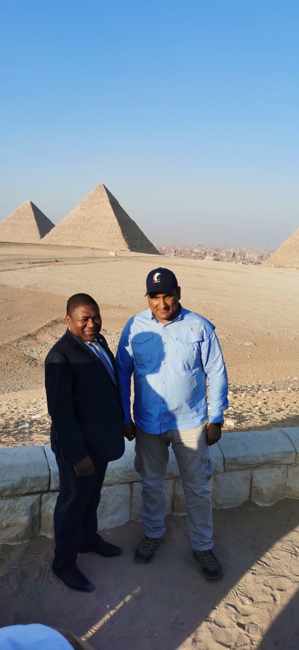 و استقبال رئيس جمهورية موزمبيق أشرف محيي الدين مدير عام منطقة آثار الهرم، إذ تضمنت الجولة زيارة الهرم الأكبر من الداخل و منطقة البانوراما.
