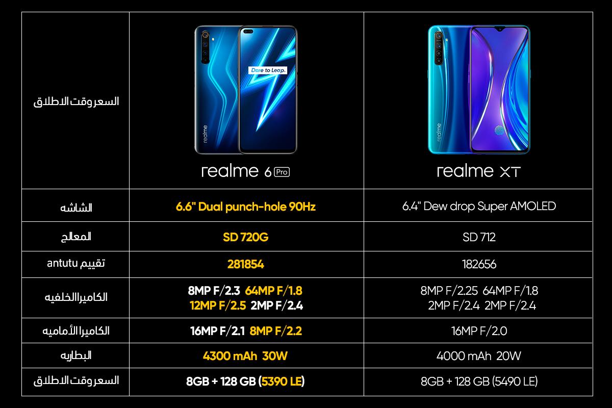 التخزين وذاكرة الوصول العشوائي وهي 8 + 128G. و يعتبر realme 6pro خليفة realme XT.