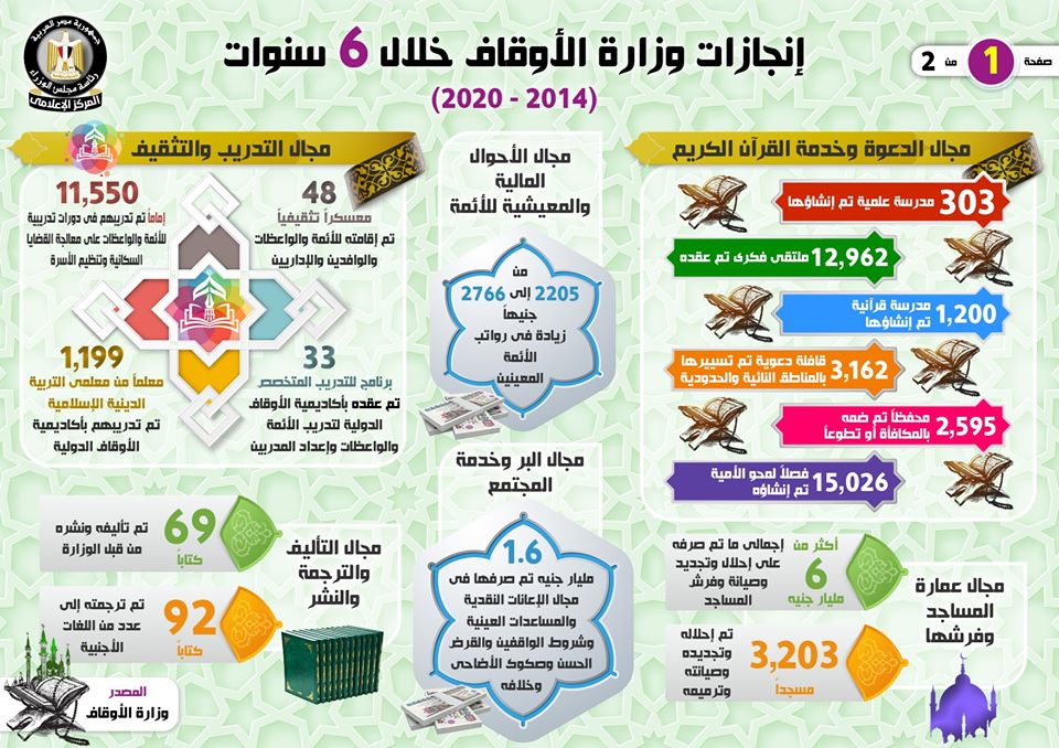 الإنفوجراف... إنجازات وزارة الأوقاف خلال 6 سنوات (2014 – 2020)