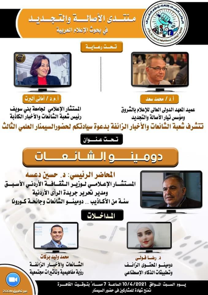 وصرحت الدكتوره رضا الفولي الباحثة بالاعلام الرقمي " لـ البوابة المصرية انها قدمت خلال مشاركتها السيمنار العلمي الذي عقد برعاية منتدى الاصالة والتجديد في البحوث الاعلامية وبرئاسة الدكتورة أماني ألبرت رئيس شعبة الشائعات والأخبار الكاذبة بالمنتدي .