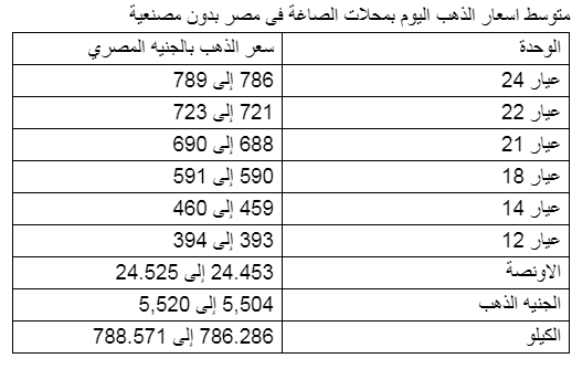 وسجل سعر الذهب اليوم عيار 18 592.12 جنيهًا للجرام، وعيار 21 سعر 690.81 جنيهًا للجرام، والذهب عيار 24 سعر 789.48 جنيهًا للجرام، وسجل سعر الجنيه الذهب نحو 5,226 جنيهًا.